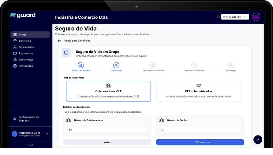 Selecione coberturas para colaboradores CLTs e/ou PJ